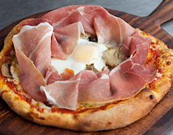 Francesca’s menu features rustic Italian fare. (Pictured: Quattro Stagioni pizza with prosciutto, artichoke, mushroom, olive and egg)