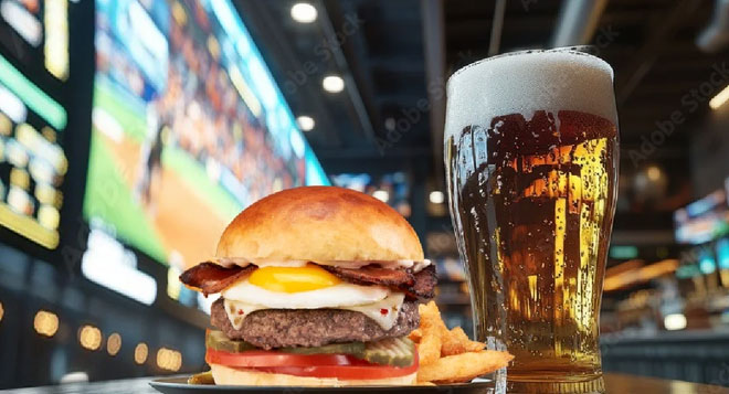 Food highlights include a BackLot Philly Cheesesteak, Hangover Burger, Ahi Tuna Stack, and Warm S’mores Skillet Brownie. The bar serves local beers, select wines, and shareable cocktails.