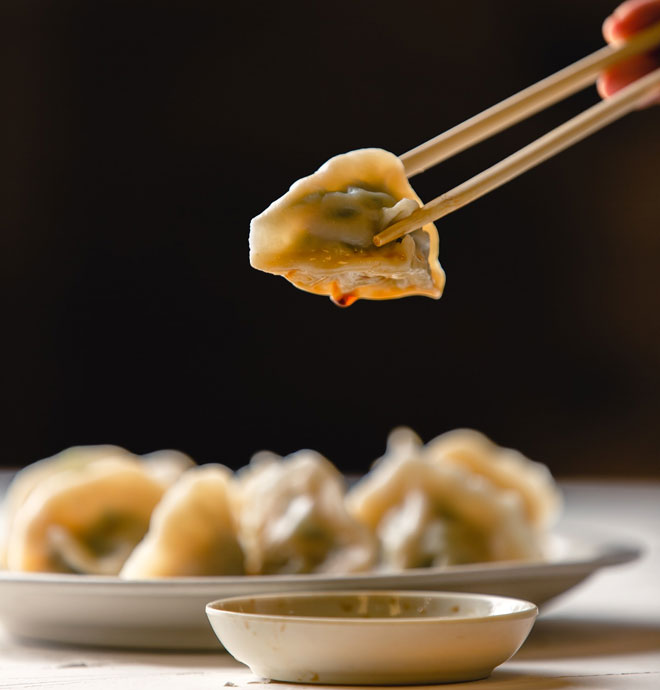 The house specialty is xiao long bao, Shanghai soup dumplings filled with pork, scallions, and a gelatinized chicken broth that turns into liquid when steamed.