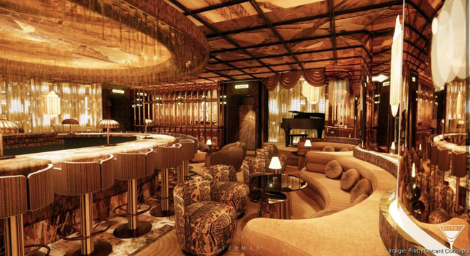 Here’s where it gets good: through a back corridor lies Filthy, a moody lounge wrapped in burlwood with live piano and servers in tuxedo jackets.