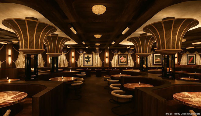 Cleaverman, a 10,000-square-foot steakhouse, seats more than 300 guests across a sprawling dining room that channels mid-century glamour without feeling like cosplay.