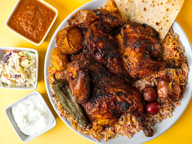 Chickenhug proves there’s still room to reinvent roasted chicken. The fast-casual standout by four friends from Jordan nails juicy, well-seasoned birds – whole or half – with crunchy coatings, house sauces that actually matter, and sides that don’t feel like afterthoughts.