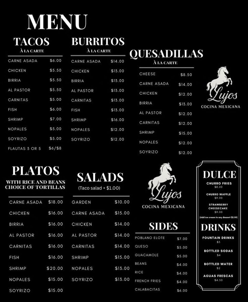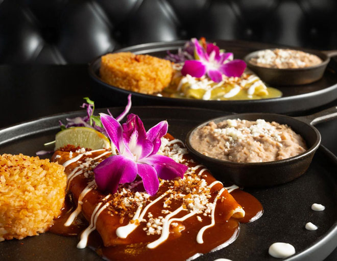 Lujos’ sleek, black-on-black interior sets the stage for elevated Mexican fare like truffle-fry-stuffed Lujo Burritos and the Gilbert Gringo Plate. It’s a refined, modern take on the neighborhood mom-and-pop shop, offering scratch-made quality in a stylish, minimalist setting.