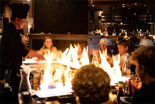Known for its ‘‘dinnertainment’’ vibe, Kasai served up sizzling steaks, sushi, Asian-fusion dishes, and eye-catching cocktails alongside the chef showmanship.